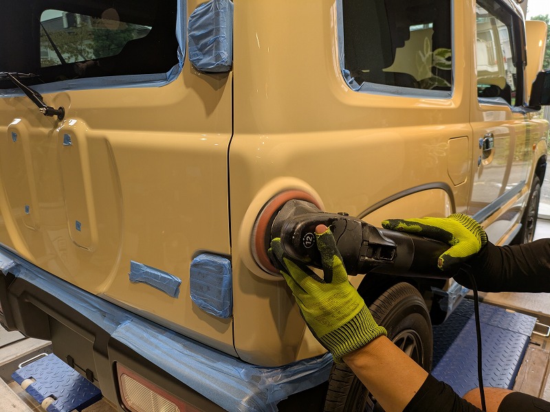 背面タイヤを取り外し新車でも塗肌調整研磨で