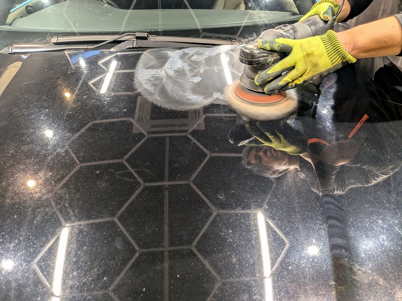 塗肌調整研磨施工後、弱い塗装のホンダ車に