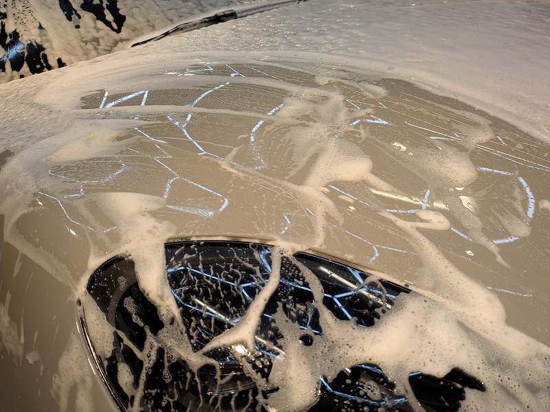吹きかけてボディー表面の汚れを浮かび上がらせます
