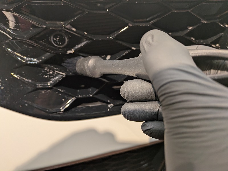 まずは、洗車をしてピアノブラック部の水染みを