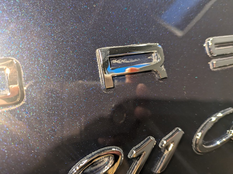 コンパウンドカスがベッタリとエンブレムのふちに付いています