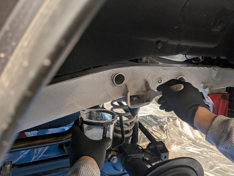 ジャッキアップ後、下回りの洗浄、脱脂をして行きます!