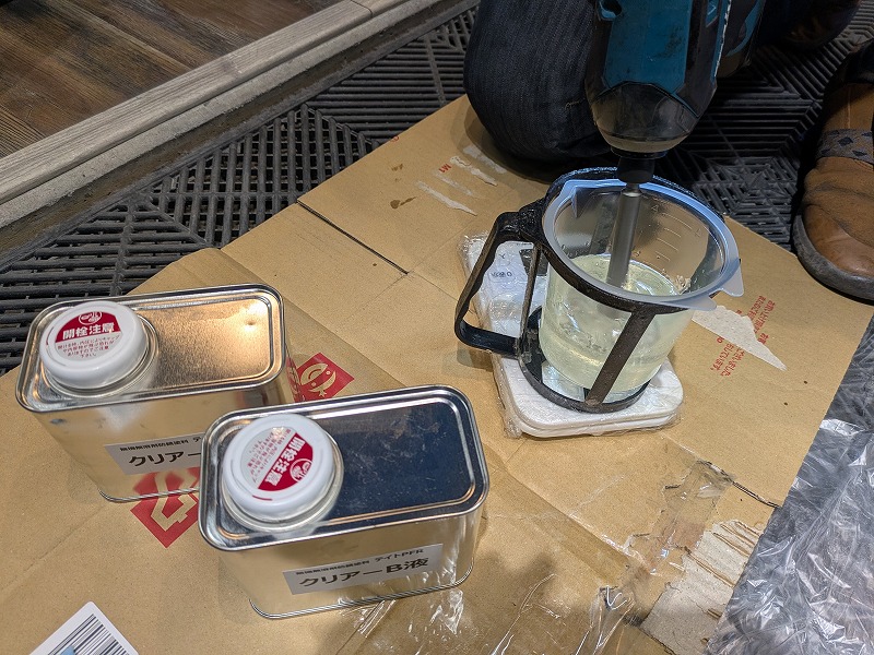 脱脂作業終了後、水性アンダーコート剤を作ります