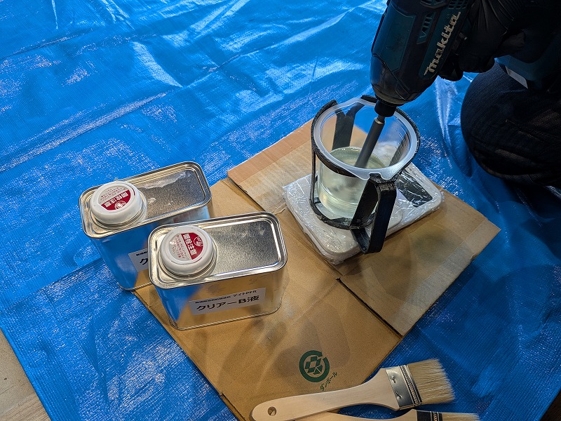 クリアーA,B液を混ぜ合わせて無色、透明な