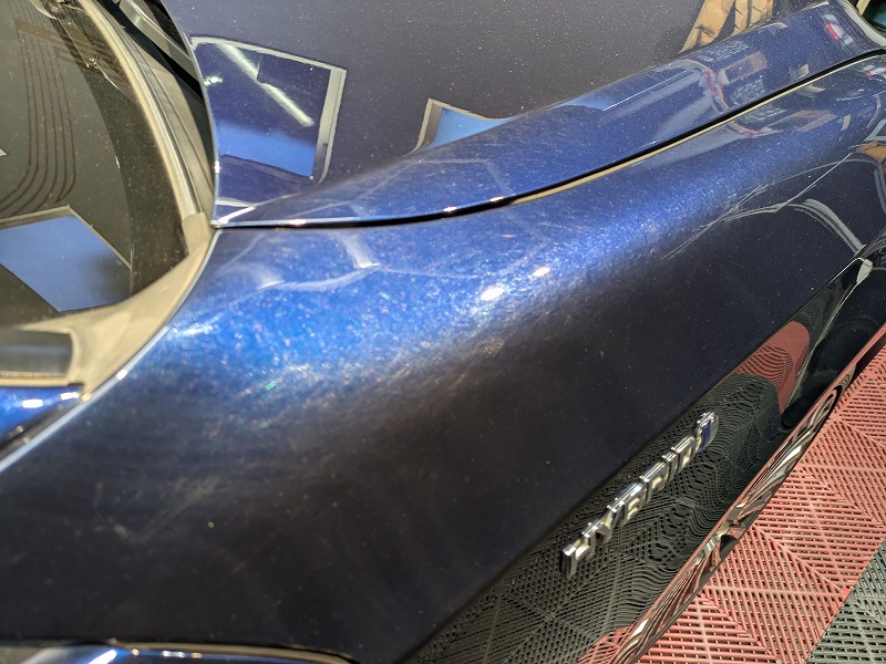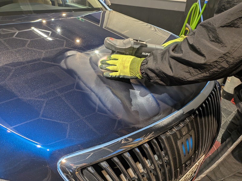 塗肌調整研磨で無数に刻まれた洗車キズを