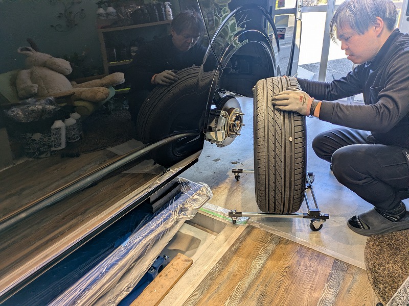 外したスペアータイヤ、アンダーカバー、タイヤを