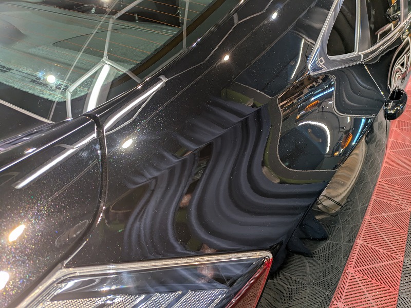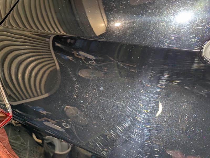 塗肌調整研磨で洗車キズだらけのボディー表面を