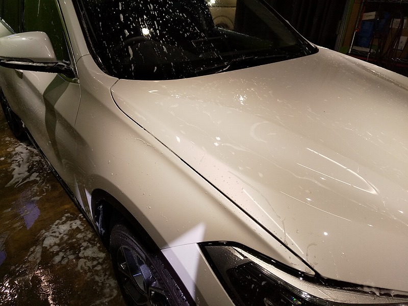 まずは、弱酸性シャンプーで洗車していきますが、撥水が強いせいか?
